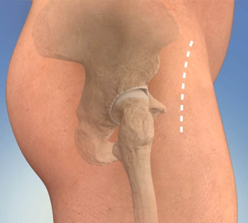 Pain and narcotic use is less during the first 6 weeks after hip replacement through an anterior approach. Individuals who undergo hip replacement through the anterior approach discontinue walking aids (walker or canes) on average at least 1 week earlier than other hip approaches. Functional outcomes measured by the Harris Hip Score which includes pain, activities, walking distance, range of motion, ability to perform stairs, use of ambulation aids, improve faster for the anterior hip approach in both short and midterm results out to at least 6 months when compared to posterior approach hip replacement.